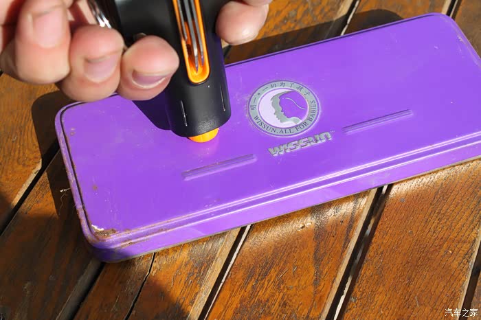 旗仕安全锤采用淬火撞针,洛氏硬度达到了55,虽然达到了超过钢化玻璃的硬度,但是应付铁皮依旧费力。
