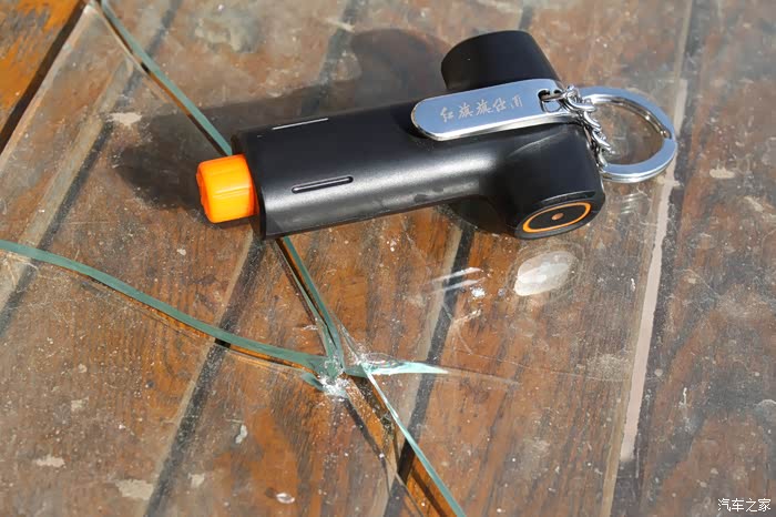旗仕多功能安全锤最主要的功能展示开始了,这才是它在主要的推荐功能,而且采用的是更加易操作 效果更明显的撞针式破窗方式,空间狭小的车内效果是最佳的。