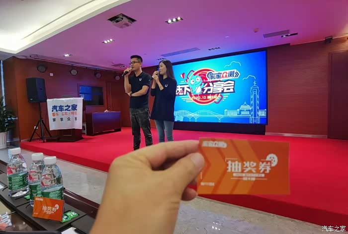 家家众测活动组织得很好,安排得很细,老司机体验分享全是干货,还备了琳琅满目的家家礼品,不少车友收获满满,喜笑颜开·。但是我注定与奖品无缘,以为抽那么多奖,还可以薅到一根羊毛呢,结果是,抽奖号码,上上下下,左左右右,前前后后,都中。然而,大小奖项总是和我擦肩而过,晚宴时,同桌的小伙伴们全都抽到啦,唯独没有我,你说郁闷不郁闷?哎,看来这是人品差到爆呀。虽然小有遗憾,但看到小伙伴们被抽中获奖,那开心快乐的兴奋劲,都已经感染到我,我发自内心地为他们喝彩,点赞
