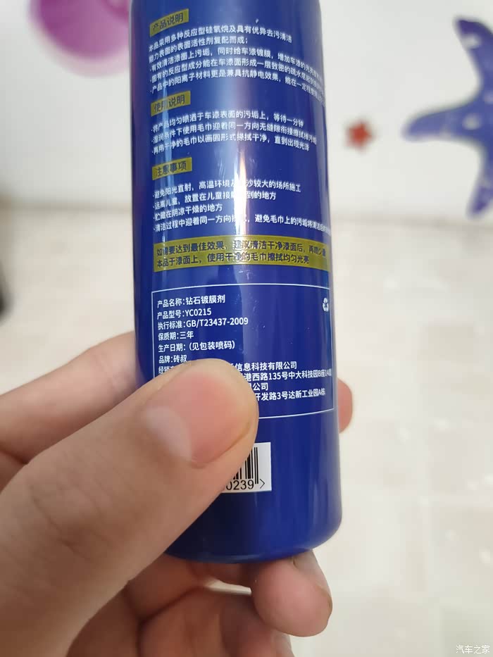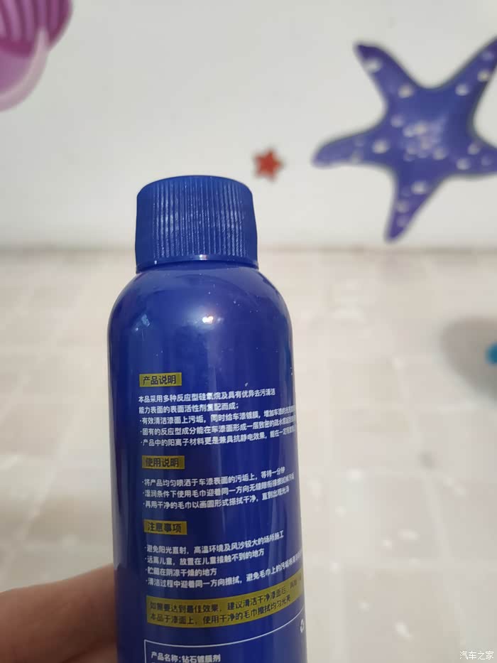 这一次和大家分享的就是一款汽车镀膜剂,经过本人观察和使用得出以下几点:1、这一款镀膜剂使用方法简单,只需要在清洁后的汽车上直接喷施,喷施后等待一分钟左右用干净抹布擦拭即可。2、镀膜后的效果非常不错,车漆的光亮度明显提高,和打过车蜡的效果不分上下。3、镀膜后保持的时间也比较长,能够持续大约一到二个月。4、镀膜后车漆驱水和驱尘效果明显,水珠和尘土较难附着在车漆上。5、美中不足是这款镀膜剂容量是在是有些少,只能够一辆轿车简单镀膜一次,当然也有可能是防止打开后长时间不使用容易变质的考虑。