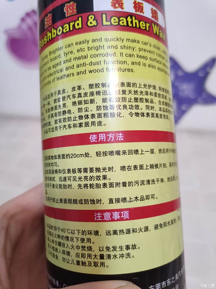 我家爱车已经使用了多年,但是内饰一直保持的比较不错,原因就是自己一直使用表板护理蜡来打理内饰,总结一下有这么几点:1、表板蜡不仅可以让我们汽车表面很脏的污渍变干净,还可以通过对污渍的清洗对车身起到保护的作用,不管是车身还是清理汽车中控台,汽车表板蜡都有一种保护的作用,让我们的汽车表面更加清洁,也让我们的汽车仪表盘更加清晰。2、操作简单,只需要对准需要清理得模板轻轻一喷,稍等几秒之后用干净的抹布一带而过即可。3、适用范围较广,可以在车辆的皮革座椅、塑料材质的中控台和仪表盘已经金属构件上广泛适用,当然也可以在日常生活中使用,比如皮质沙发,塑料制品,金属制品等。4、美中不足之处就是使用时会有一些难闻的气味,建议使用时在通风状态下使用。