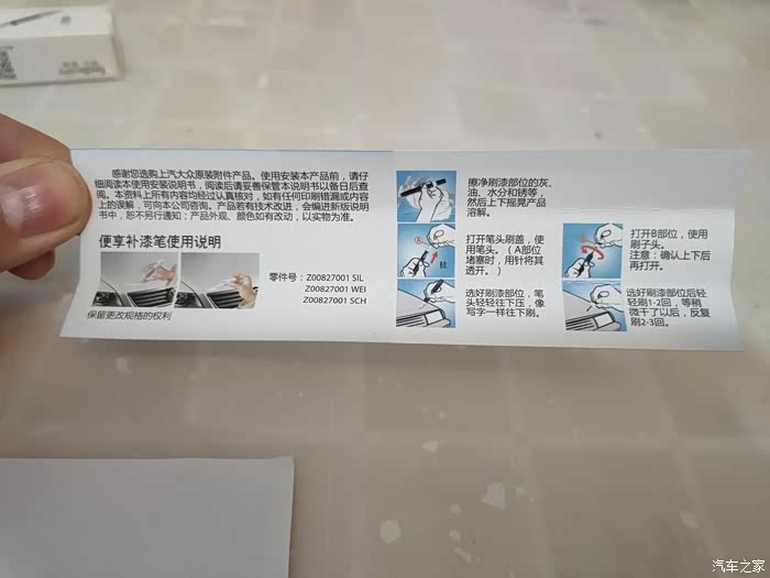 几十年前汽车还是一种奢侈用品,但是随着社会经济的发展 现在汽车已经成了普通老百姓的主要交通工具 随着道路上行驶的车辆增多, 汽车难免会遇到一些小刮蹭,特别是如今越来越拥堵的道路,频繁的变道超车成了“家常便饭”,这大大增加了被刮蹭的概率轻划痕和剐蹭时去喷漆既费时又费金钱,所以现在很多人都会选择补漆笔自己进行简单的修补。我今天和大家分享的就是一款大众原厂的补漆笔。由于本人的爱车是黑色的,所以这款补漆笔也是选择了和原车漆出自一处的黑色。