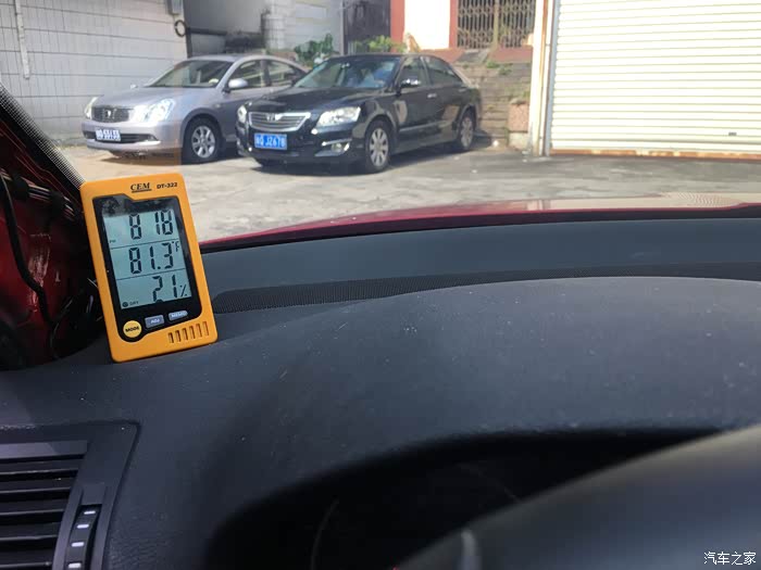 支架刚好可以固定在汽车的仪表台上。支架刚好可以固定在汽车的仪表台上。显示室内温度33度。车内湿度10%。在南方最怕车内。事多。比较高,容易发霉。影响身体健康。