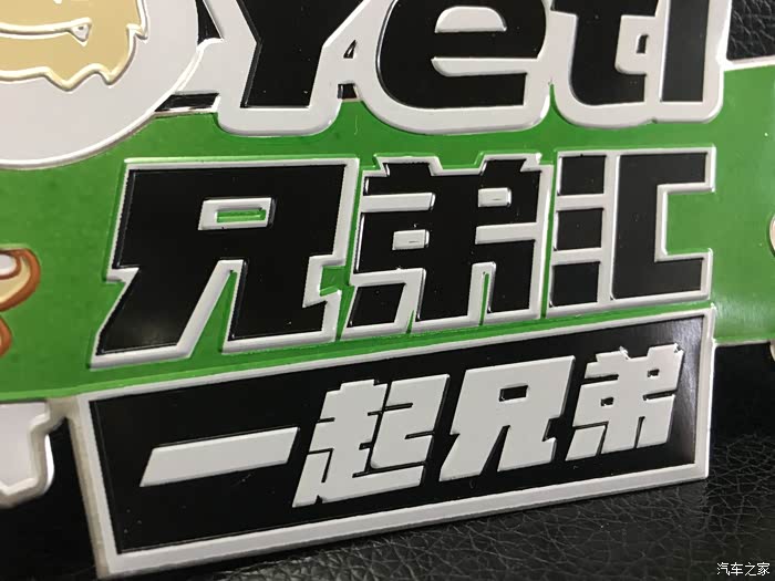 拆开塑料膜展示在大家面前的就是这个限量车标。他一共三种颜色组成。黄色,白色,黑色。