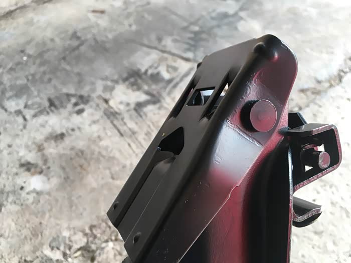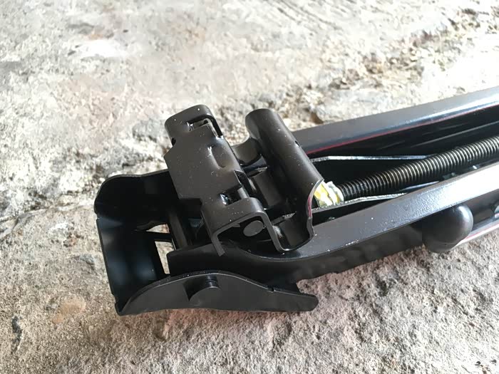 一起看看人字形千斤顶的结构,这个卡位就是与小车相连的支撑部位,下面的是与地面接触的脚撑。