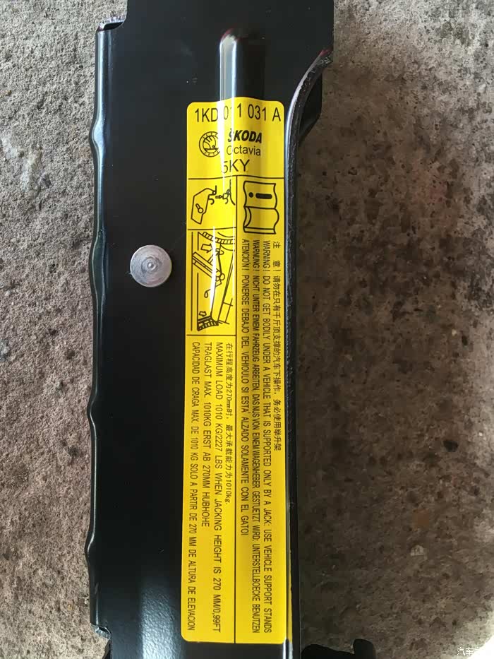 产品优点阐述:产品为原车配件,品质不错。人字形千斤顶用起来也比较方便省力,贴在千斤顶侧面的说明也很明了,男女司机都可以自行操作。