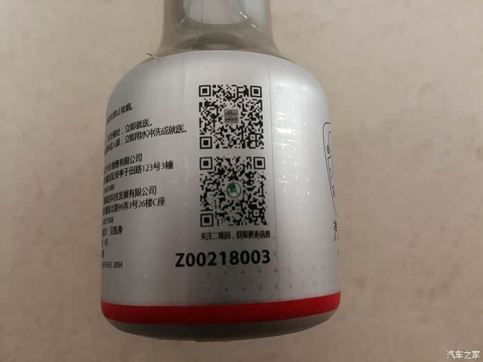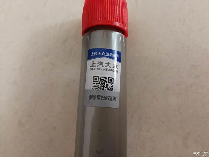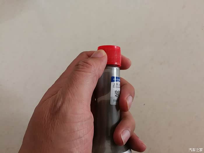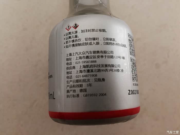 汽油清净剂瓶身的上汽大众防伪二维码。
