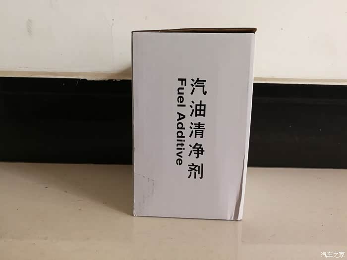 白色纸箱另一侧的产品名称:汽油清净剂和英文名称。