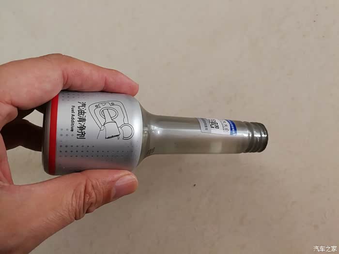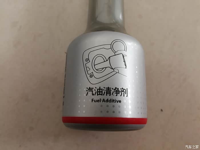仔细观察汽油清净剂,正面是“汽油清净剂”名称
