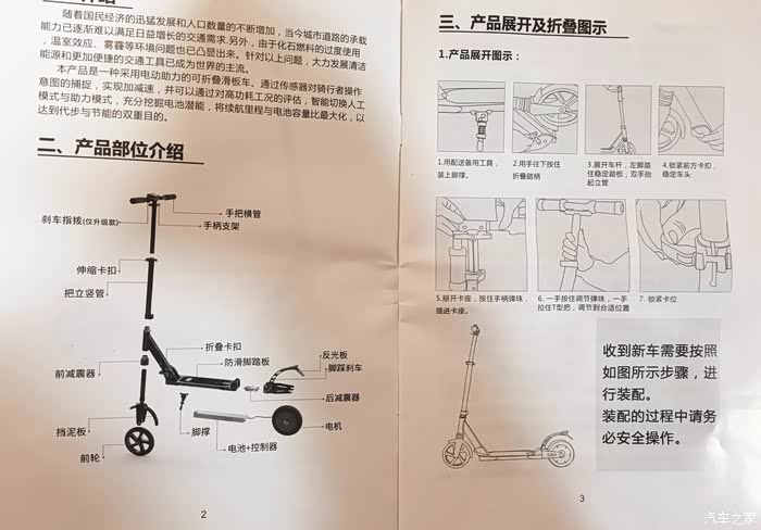 说明书,各部位的介绍,以及展开、折叠方式,描述的很详细...