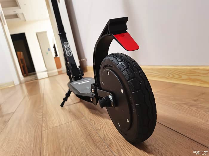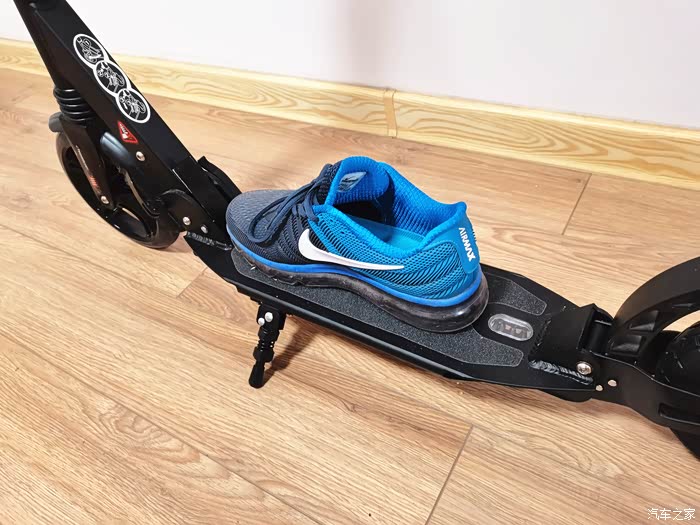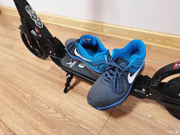 前脚站慢,后脚基本就只能这么站了,会不会不太舒适呢,当然如果作为滑板来骑行的话,脚在地上扒拉几下也不是不可以,具体的还是等我出去溜几圈以后再来给大家讲讲吧...