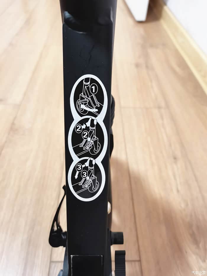 这几个小标是教我们如何快速折叠的,很精致,对于整体黑色的车身也算是一个装饰...