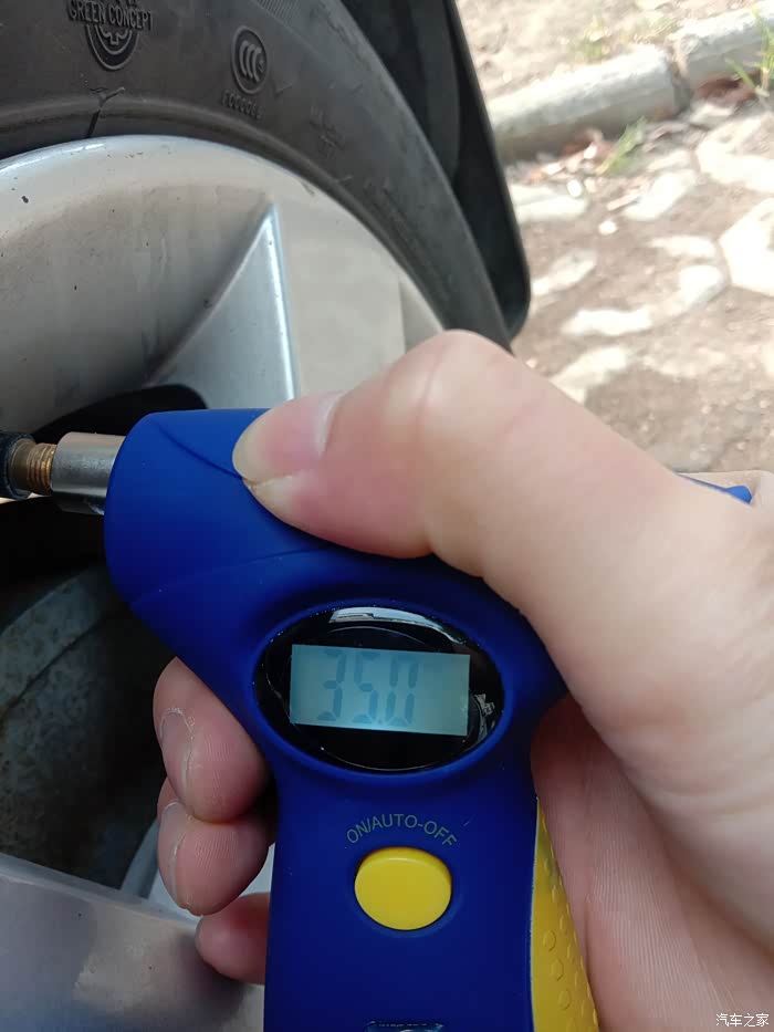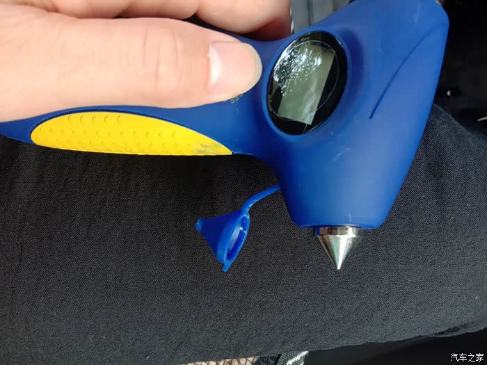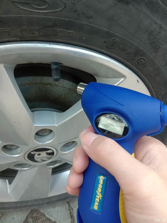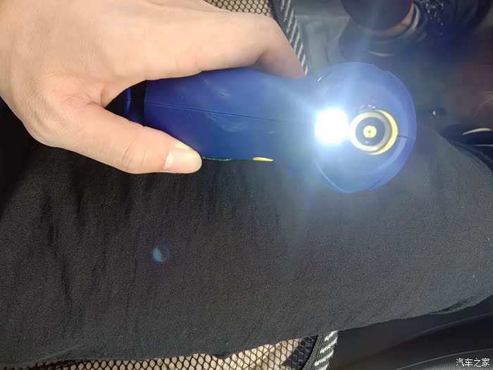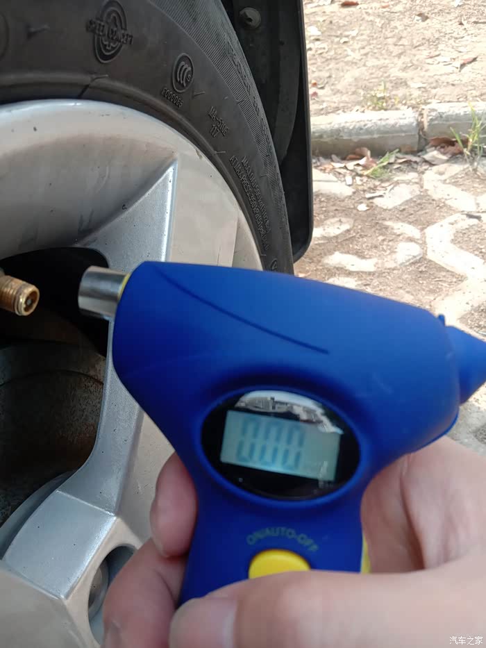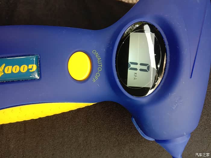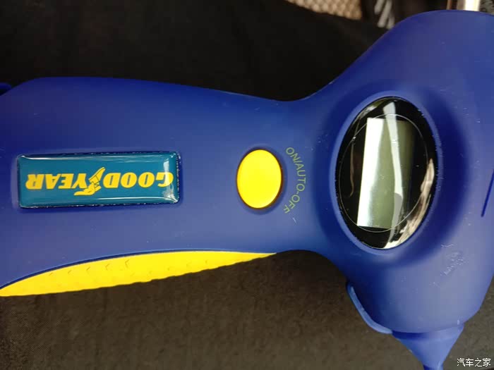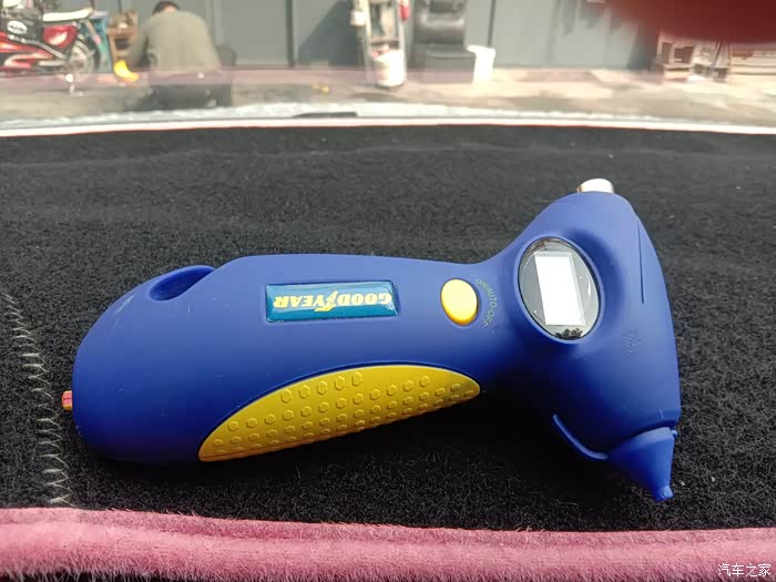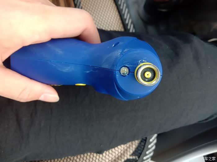 首先我们来看看,第一个功能,那就不要想了,就是胎压监测,看见那个圆形口了吧,就是对上轮胎气门嘴,稍微一压,就可以监测出气压值。