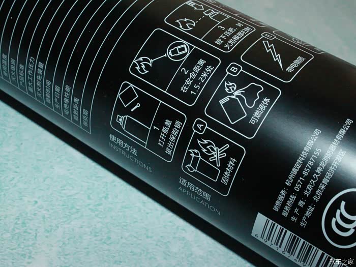 4、灭火器的设计比较新颖,瓶身采用轻微的磨砂效果设计,手感上也不错。