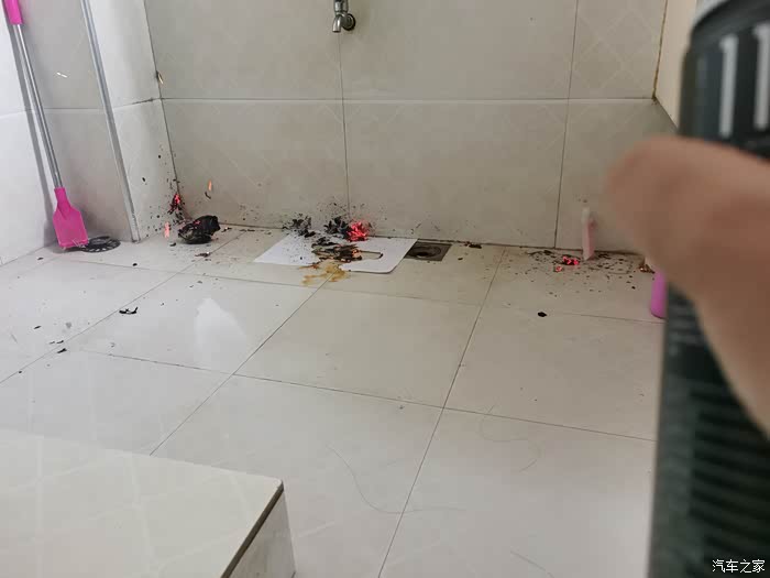 这是第一次喷错的水雾,在地砖上留下了小小的气泡。