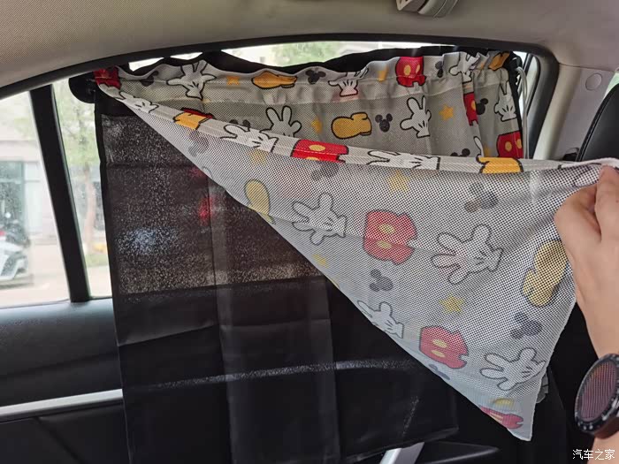遮光帘的遮光效果还是不错的,细节处理也很到位,可能是为了适配各种车型,所以在窗帘的长和宽上尽量做到了最大吧,对于小车来说,稍微有点多余,图案也比较卡哇伊,比较适合后排乘坐的小朋友,但是小朋友稍微一用力就可以拉下来,吸盘的吸力效果不是很理想。