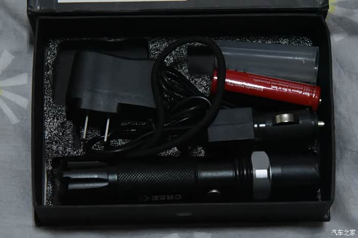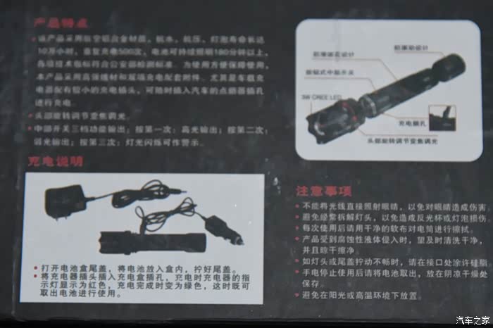 3、另外这款车载手电的,当然也配备了车载充电器,可以使用汽车的点烟器口对手电进行充电。也可以使用家用220v的交流电为此款手电进行充电。充电也是十分的便捷。