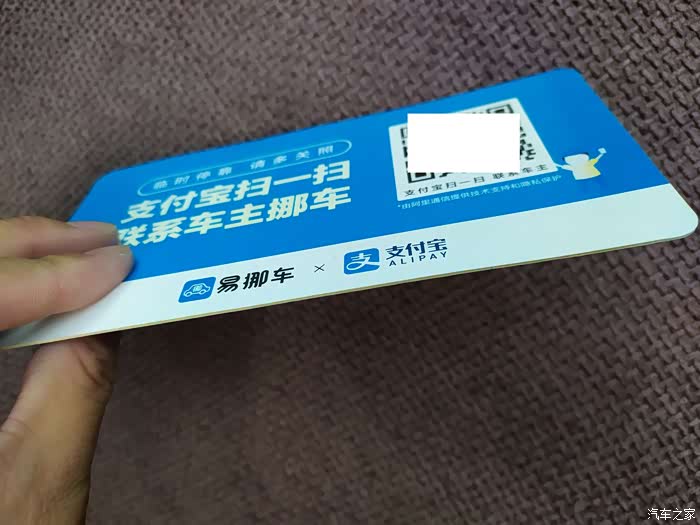 支付宝发行的二维码挪车牌,可以免费申请,收到后需要激活绑定手机号,有问题需要扫码拨打电话时,只需要用手机二维码扫描挪车牌上的二维码,就会拨打电话到中专号码,然后中转号码拨打到车主电话,就可以实现两者之间的联系,互相不知双方电话号码,所以不存在泄露隐私的情况,操作简单使用方便。不过这件二维码挪车牌而言,包装作用就比较一般啦,仅仅是一张不到2mm的纸板而已,没有密封包装,不耐折不抗水,估计也是不收费免费申请的缘故,没有在二维码上下功夫设计产品,挪车牌外表面印有二维码以及一些简单的说明,好在基本用途已经达到,所以也是非常实用的。
