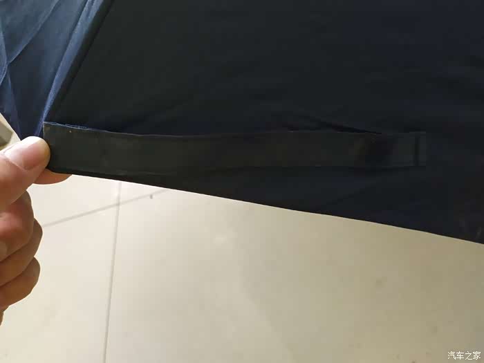 这件家家出品的雨伞呢,外观上也是使用了跟汽车之家一样的深蓝色主体,雨伞外观上印有汽车之家四个大字和看车买车用车的家家口号,使用白色涂料印在了伞上。家家雨伞外部蓝色,内部则是银白色设计,雨伞多次折叠,收纳后可以缩小大非常小的体积,携带也非常方便,放倒车门储物格也是非常合适的尺寸和位置。雨伞布料质量很不错哦,完全不会担心有渗水的问题,雨伞使用了魔术贴的设计,不适用时只需要将伞布收纳缠绕,然后用魔术贴将雨伞收紧即可。家家雨伞伞把使用黑色硬塑料设计,外表光滑握起来很有手感,而且外表光滑不伤手,也是非常细心贴心的设计,车内常备一把雨伞,尤其是家家雨伞,也是非常不错的选择。