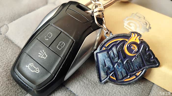 钥匙扣背面有一体成型的汽车之家字样。