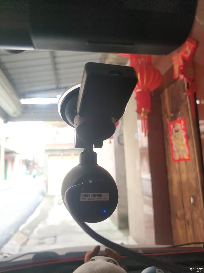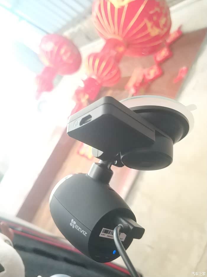 本人比较喜欢固定在前档车窗中上位置,这是固定好的样子。