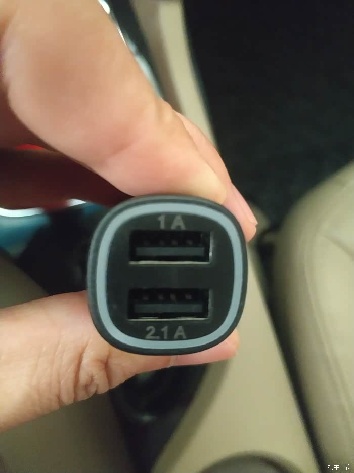 两个充电口,1A和2.1A,可惜不是快充。