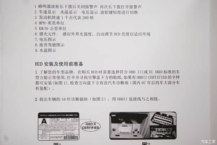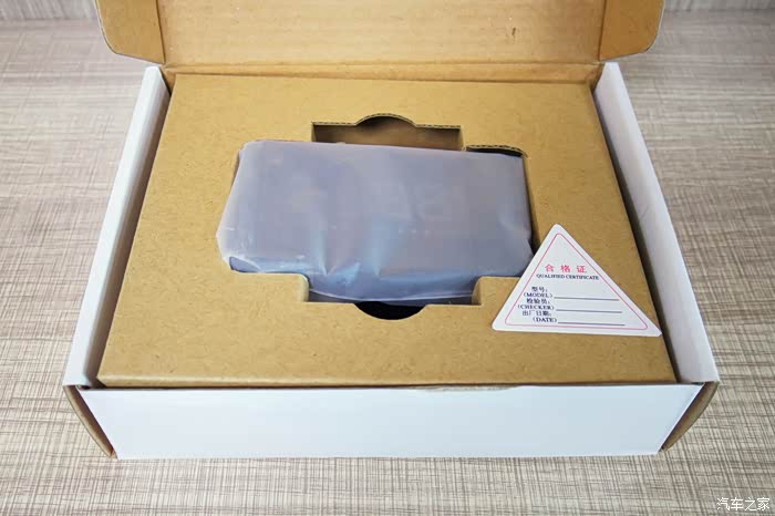 打开包装盒,看到里面的抬头显示器和合格证。