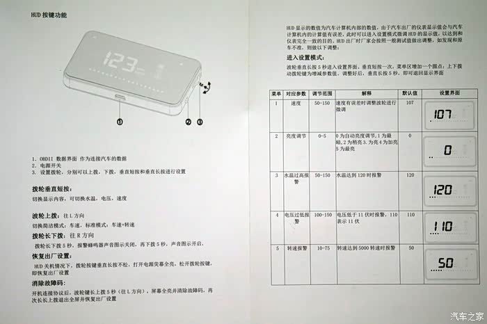 全是英文,也不知道是什么意思,反正也不用懂的,知道这是抬头显示器就行了 。