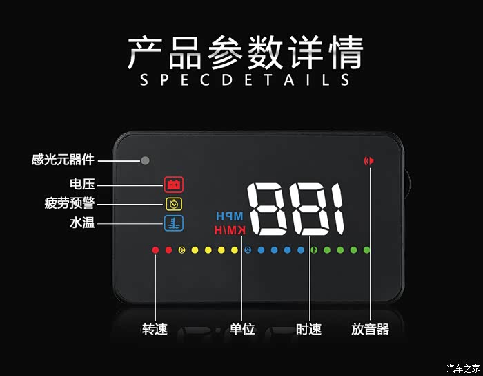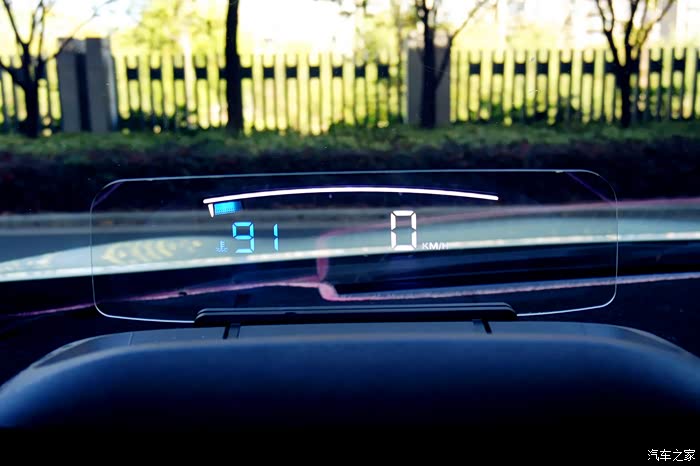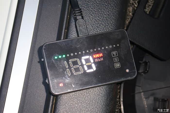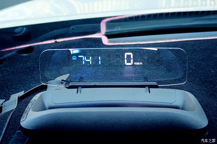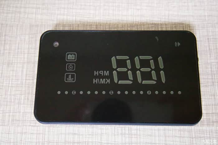 抬头显示器上面可以显示电压,疲劳预警和水温,还能显示转速,最重要的能显示速度。
