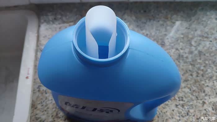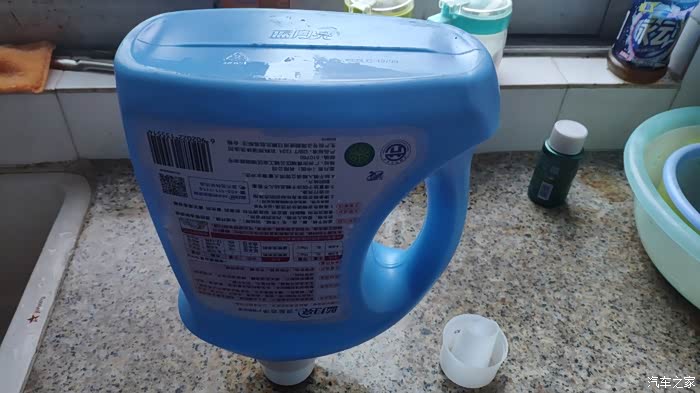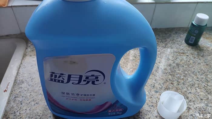 就用这个蓝月亮洗衣液的3升桶来兑水。