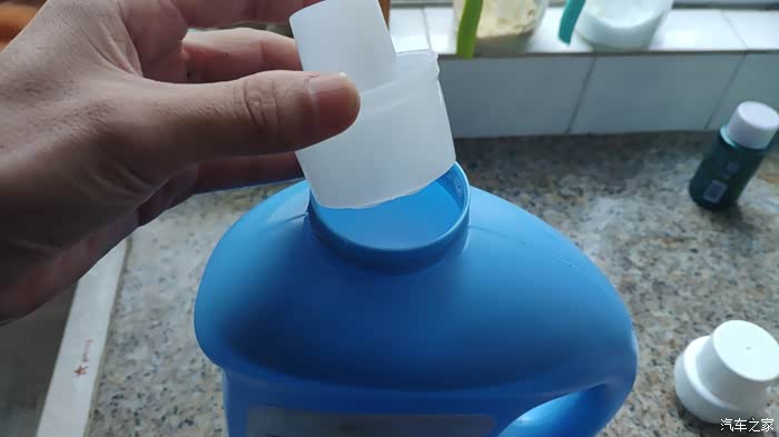 盖好盖子去加入汽车玻璃水壶里面。