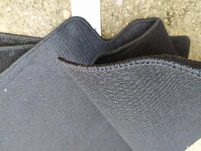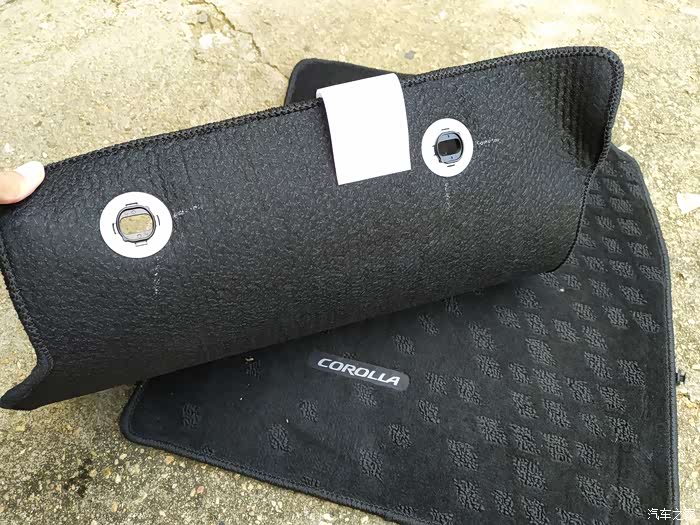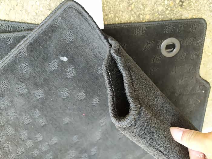 这套脚垫是车用原装脚垫,随车赠送,说是原装,也只是带着车标而已,实际使用仅有脚垫的功能,而且清理起来也不是很方便。下面就来一起仔细观察一下。