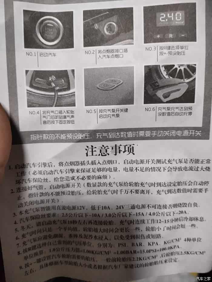启动车子后,插上充气泵电源后,显示0.00的压力。没问题。