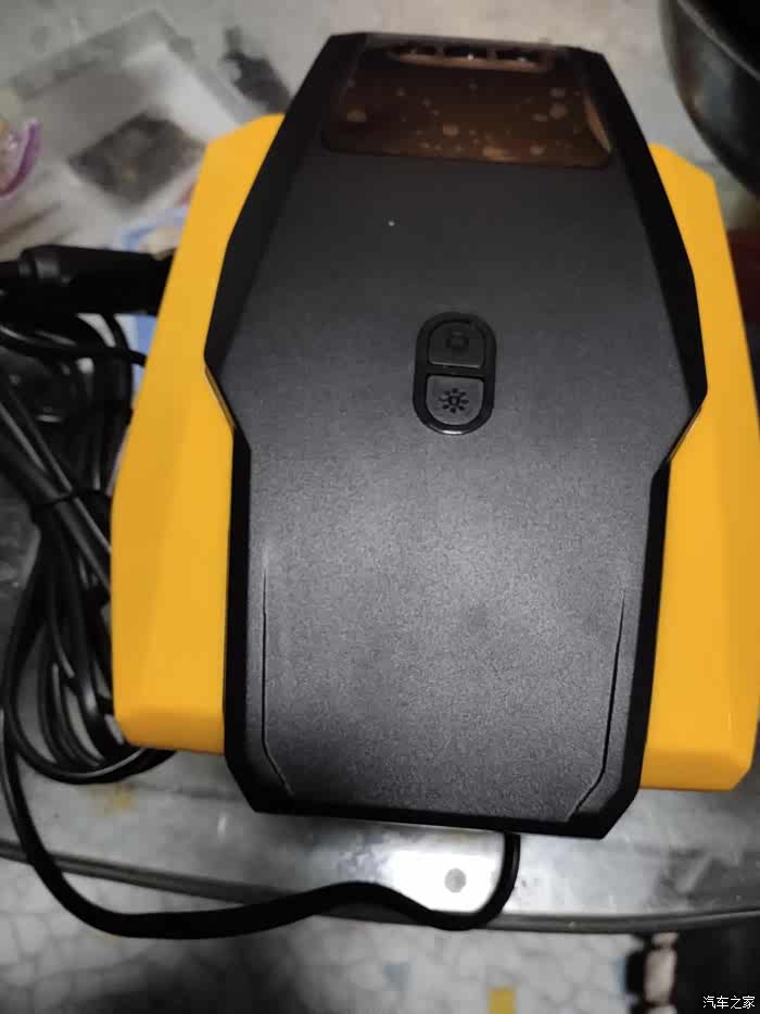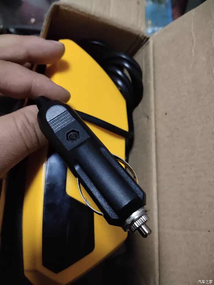 接下来就是开箱查看机器了,这个机器怎么说了,样子还是挺好看的,材质摸着也不错,手感挺好的。不过上面有的地方还是有磨损的了,已经有划痕了,看着不像一台新机器了,应该还是包装的问题了。简单看一下,上面有一个液晶的显示器,还有一个液晶灯,上面有两个开关,还有设置按钮。功能还是挺简单的了。有一点不好的是只能用点烟器才能接电了。如果能再加个12V的头子就更好了,这样220V的家用电也能用了,不需要一直启动着车子了。这也算是一个建议吧对厂家的。