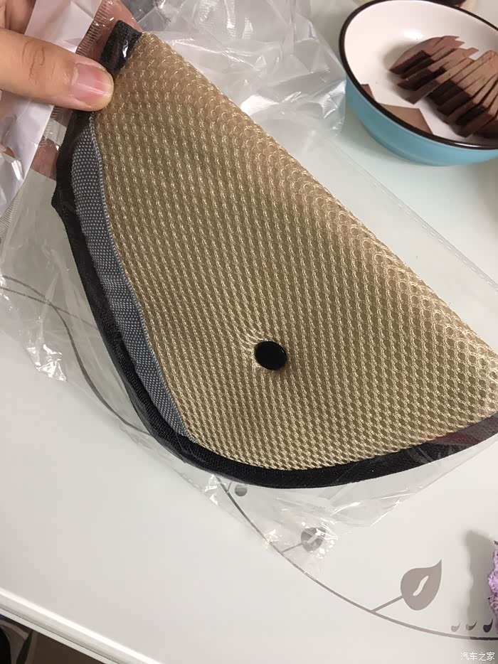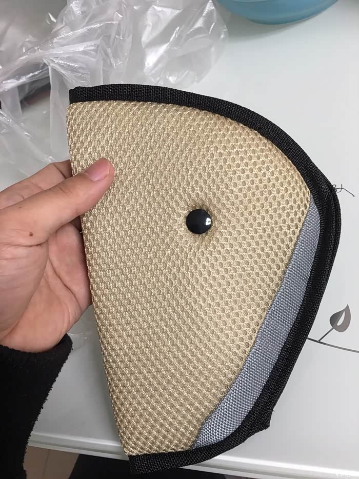 车载儿童安全带卡扣式保护垫,先来几张照片,实拍图,请大家上眼,嘿嘿!个人拍照技术有限,希望大家不要嫌弃,因为本款产品快递到了以后,感觉包装简单,所以不是太看好,就自己实实际测试了一下使用效果。一个人拍摄,效果一般,光线也不好,请见谅。不过测试的结果还是不错的,产品实用效果非常好,大大超出了我的预期!非常棒的产品,话不多说,直接看图吧!有图有真相!