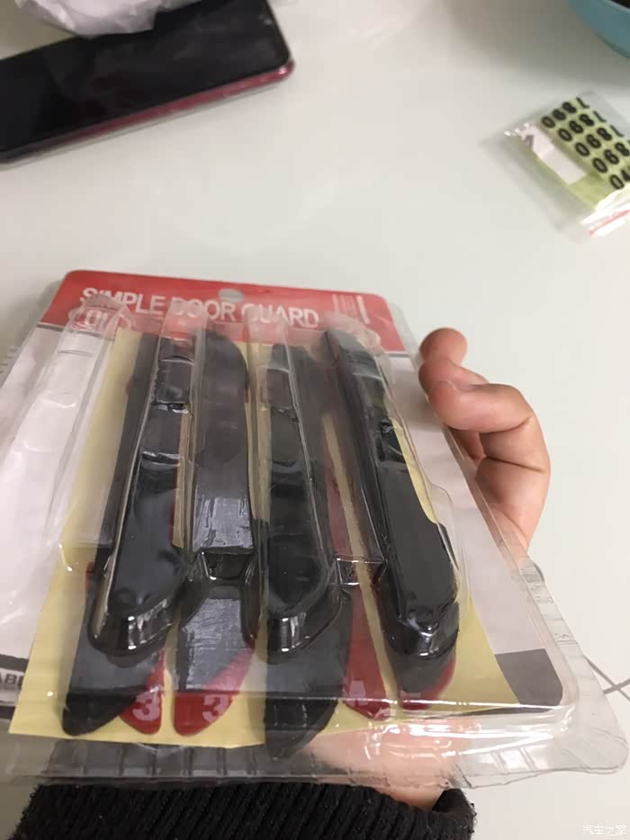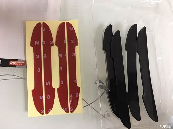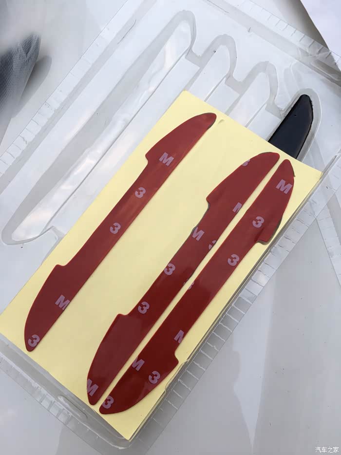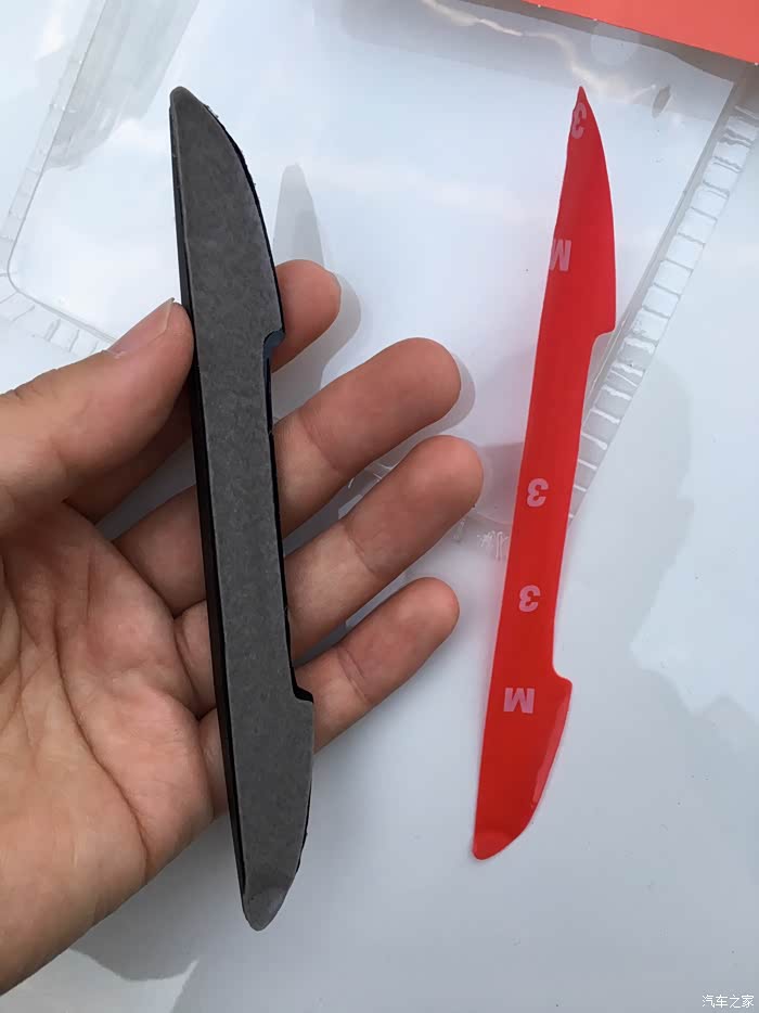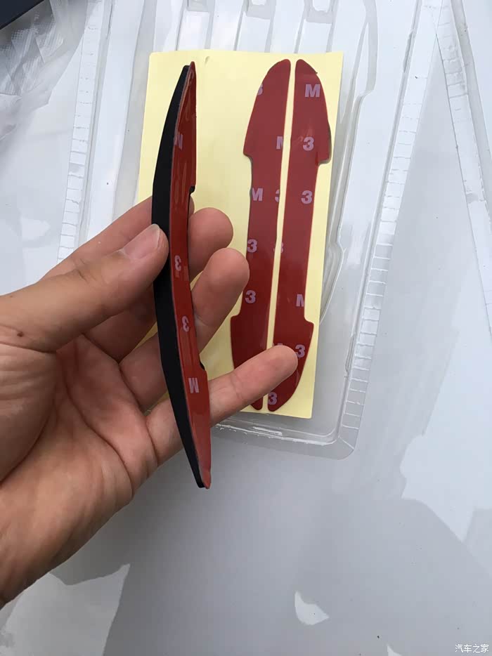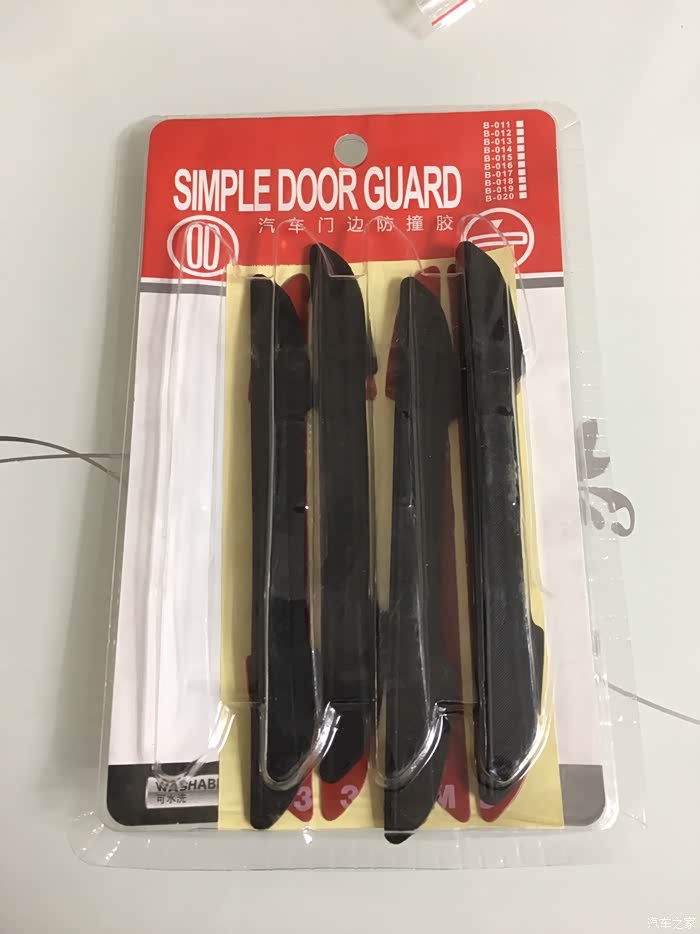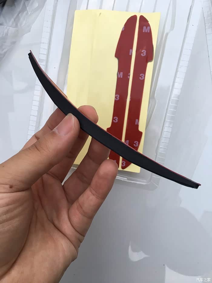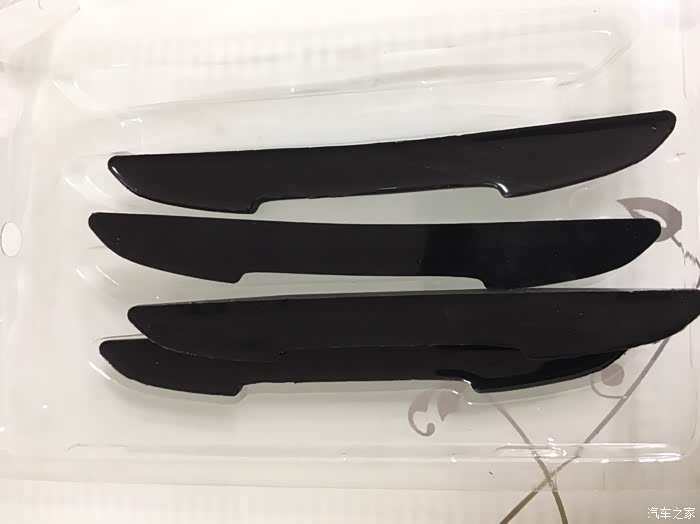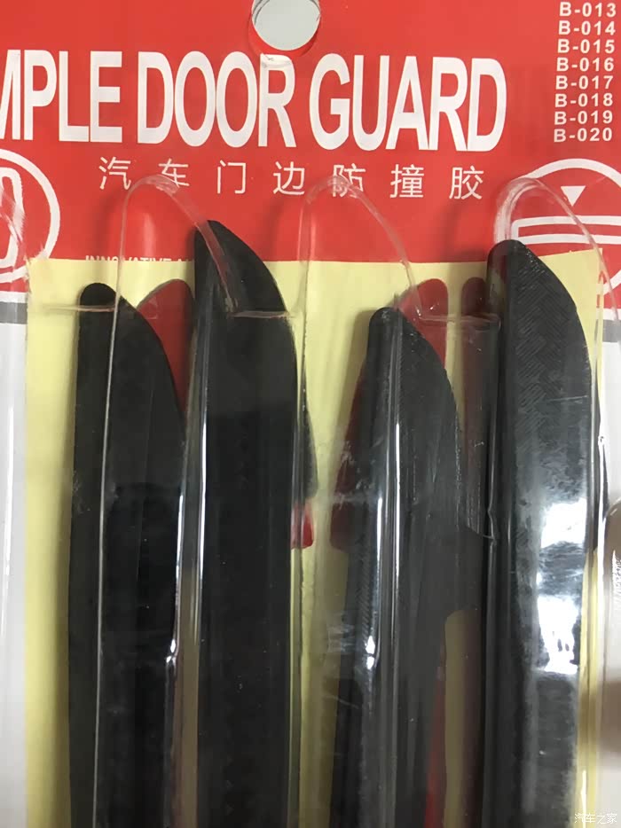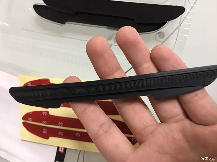 黑色四条装,一款即可满足基本的四门轿车使用。个人感觉有几点不太满意的地方,一是胶条的背胶和胶条本身是分离的,需要安装时自己组装,这个设计感觉很无语,很多时候都是因为在粘贴的时候混入了灰尘等杂物而导致胶条不耐用,短时间内容易变形和脱落。上次我所用的白色胶条就是因为这样的原因导致的,相对而言,我买的另外一个卡通小手掌造型的防蹭贴就是胶条一体的,粘贴操作起来非常方便快捷,而且只需要把车门上需要粘贴的地方清理干净即可,提高了成功率,降低了操作的难度。因为自己操作的时候很多人都没有办法解决无尘操作的问题。所以建议还是胶条一体的更适合大众消费群体,有更好的效果体验。