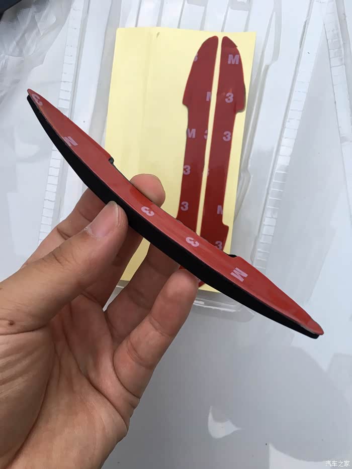 本次选择的是粘贴在后视镜上,原因是车门上已经有了,再次就是想测试一下这款的稳定性,后视镜这个地方是是弯曲的,粘贴上去以后更能体现粘贴的牢固性!