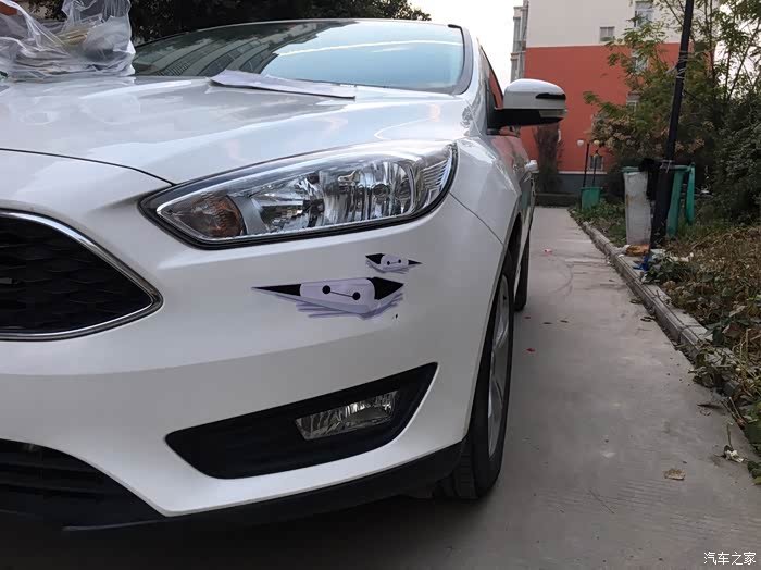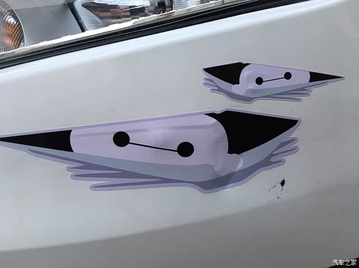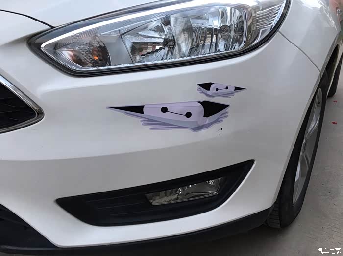 这是贴起来的样子,大灯的眉毛变成了大白和小白了,本来是被蹭了一个刮痕的。贴起来的样子还可以,一般般,没有太大的问题。不过也不是非常完美,只是应急之举吧,把原本的划痕遮盖起来了。