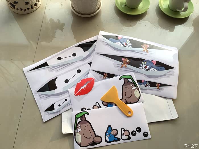 ,不得已而为之,试一试贴纸吧,去再维修,重新做油漆也没这个必要,所以上贴纸。