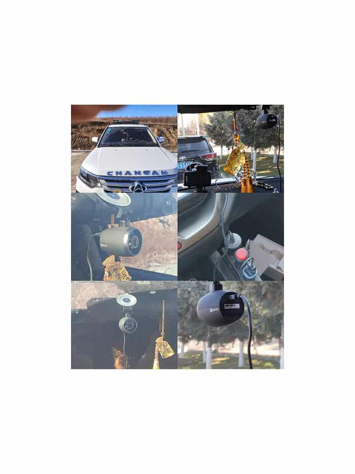 正好手里有12v直流电源,赶紧链接试试(摄像头背面)。车内安装布局。