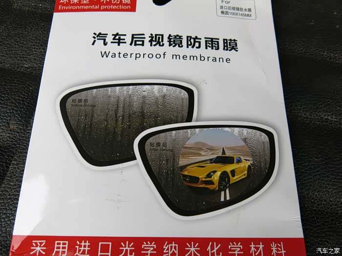 后视镜防雨的几种解决方案:1、在后视镜上方加装雨眉:雨眉能很好的保护后视镜清晰,方便雨中行车查看路况。当然,如果遇到狂风暴雨,无论再神奇的工具也会失去效用了,但是会增加风噪。2、后视镜上贴膜:优点是简单贴上去就好了,但是由于制作防雨膜的很多厂家都是以生产手机膜或者其他膜为主的,并没有多少个厂家全心地去研发生产防雨膜,所以说市场上的防雨膜是非常混乱的,不论是价格还是质量,实在是参差不齐。而整个市场的需求量大又决定了很多厂家会拌着做这个产品,所以说想要找到质量好价格又实惠的防雨膜并不容易。3、喷涂防雨剂:喷一喷就管用,但是要经常喷。分析了优缺点现在我就重点介绍后视镜贴膜。
