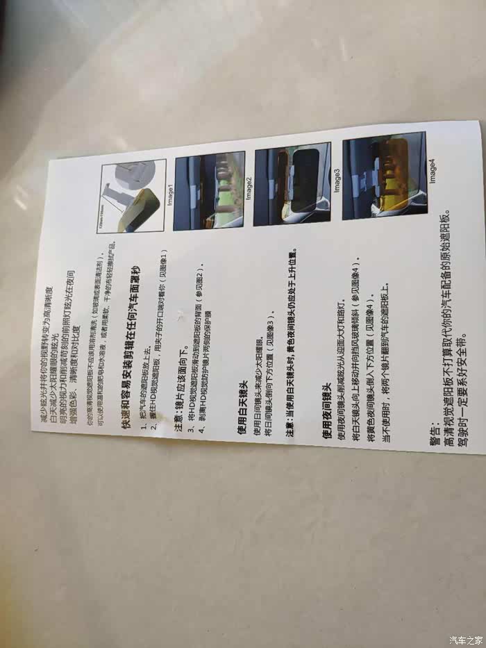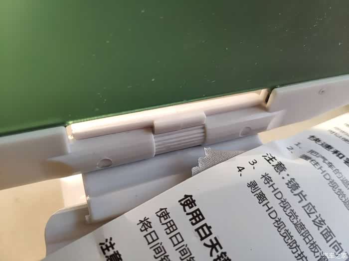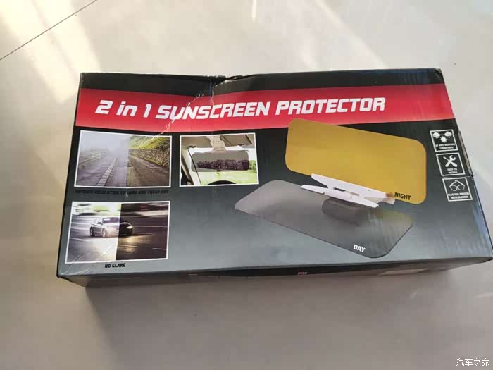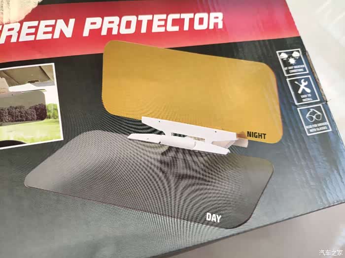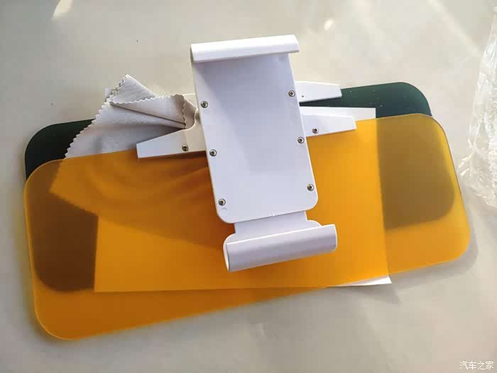 先说一下包装,快递的包装很简单,打开包装箱,里面就是商品包装,长方形的盒子,后面印有商品的介绍,前面是商品的图片。拆开盒子,还有塑料袋包裹着遮阳镜。盒子里面,有一款遮阳镜、一块擦镜布和说明书,遮阳镜分为两块面板,一块是白天用,起到一个遮阳,放刺眼的作用,一块是夜间使用,防止炫光和夜视的功能,两块板子可以来回的开合,方便切换场景使用,开合的时候有阻尼感。镜子的后面是一个安装夹,这个是夹在汽车的遮阳板上面的,架子的大小可以调整,很方便。