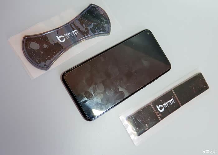 2、容易留下痕迹,在图中可以看到,我用手机正面沾了一下,留下了万能贴的痕