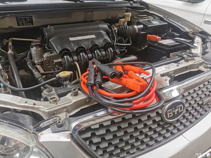 等到无电车正常启动起来,就可以把搭火线拿下来了。拆卸打火线的顺序是先拆有电车的正极,再拆无电车的正极,先拆有电车的负极,再拆无电车的负极。
