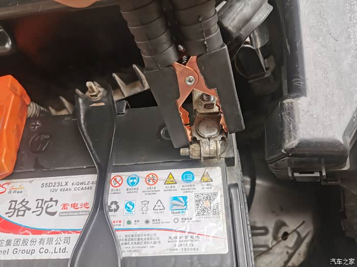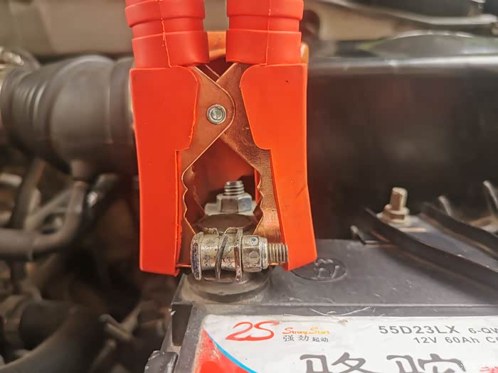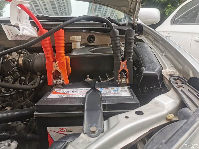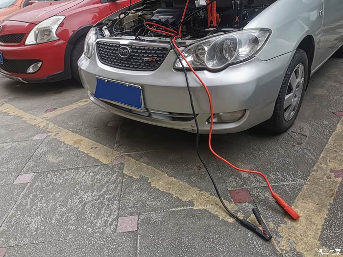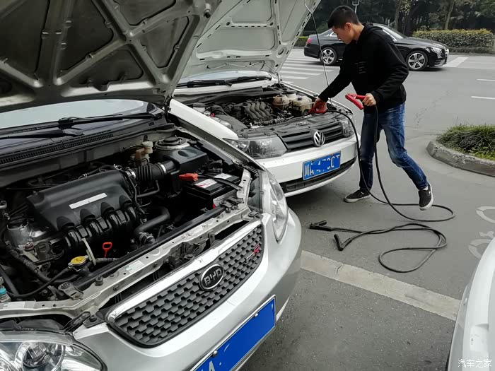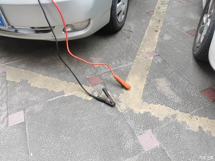 小哥来了之后登记了信息就直接开始用打火线对接到另外一辆车子上,因为这根线点火成功了。