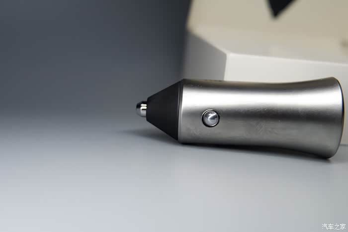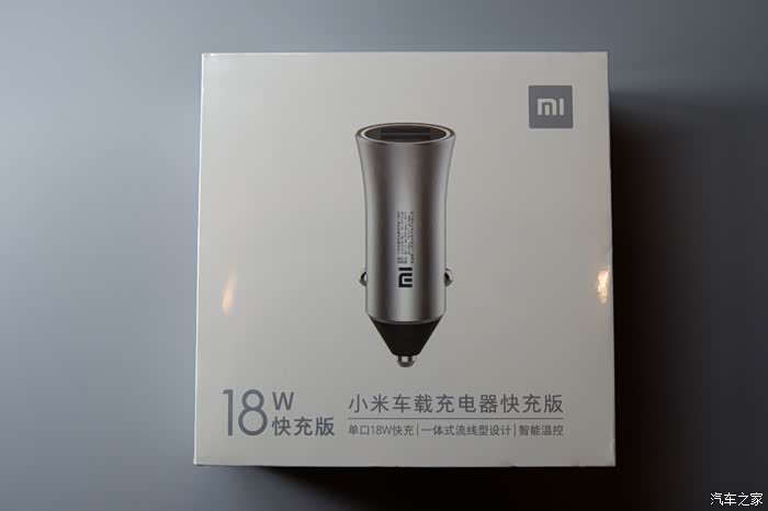 小米车充采用白色的手工包装盒,天地盖结构;这个尺寸的包装在哪里似曾相识,貌似和小米手环1S的包装差不多,但手环是牛皮纸盒,这个是白色的。
