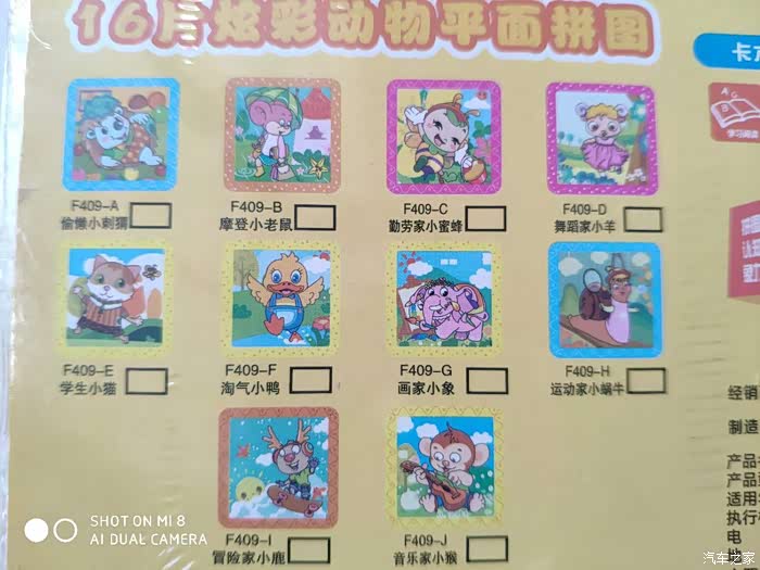 背面印有各种图片的拼图,应该是一个系列的。