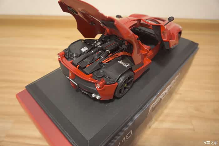 话说法拉利拉法,作为法拉利旗舰超跑,价值2000W,也是无数人的dream car,LaFerrari采用了一套混动混合动力系统,一台6.3升V12自然吸气引擎可输出588千瓦的最大功率,拉法的0-100km/h加速时间可以达到3S之内,最快速度能达到350km/h以上,称之为陆地飞行器也不为过吧……而回归到现实,别说坐过了,就是到现在,我都还没有见过现实中的车子……不过好在搏一搏,单车变摩托,经过不懈的努力,我终于有了人生中的一辆法拉利拉法——的车模!1:18的真实比例,细致的刻画,合金车身,虽然只是比手掌略大一些的尺寸,但是拉法霸气的的气质和酷炫的外形也完全可以完美体现了……