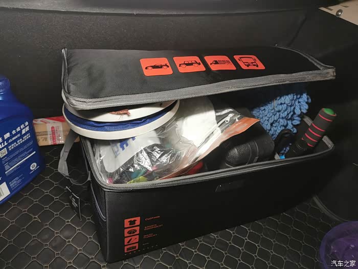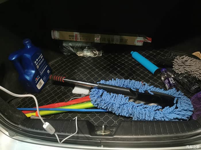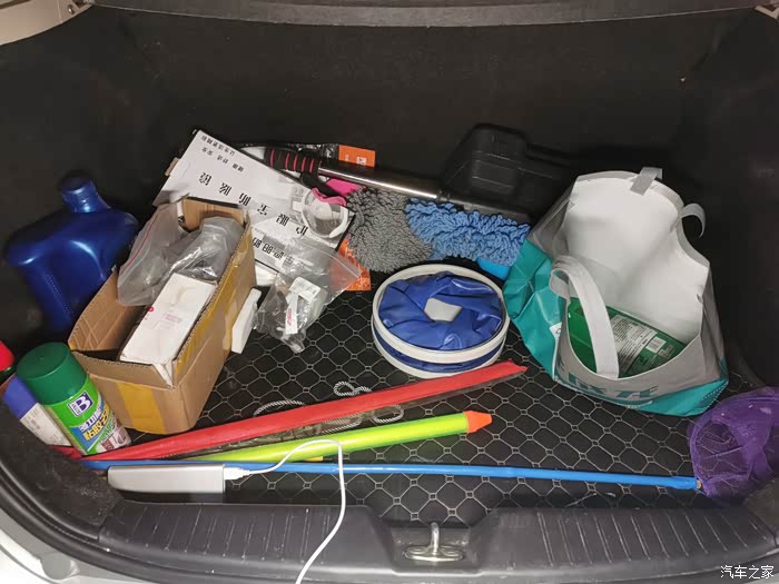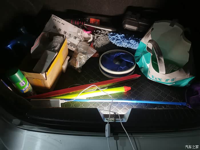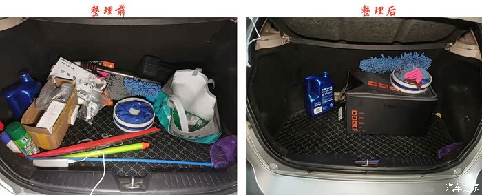 超长的确实不能放入,不过后备箱比较起之前的情况整洁了很多 。