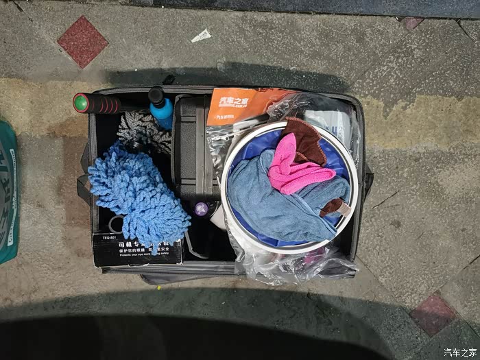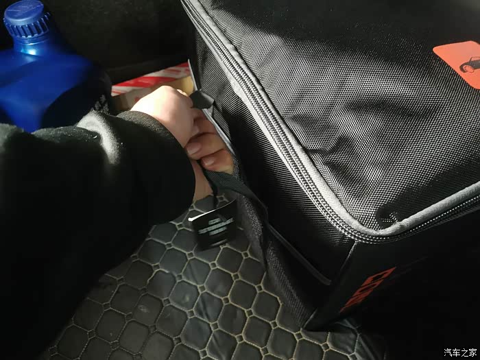 逐步的将后备箱内的杂物放置在收纳箱内。